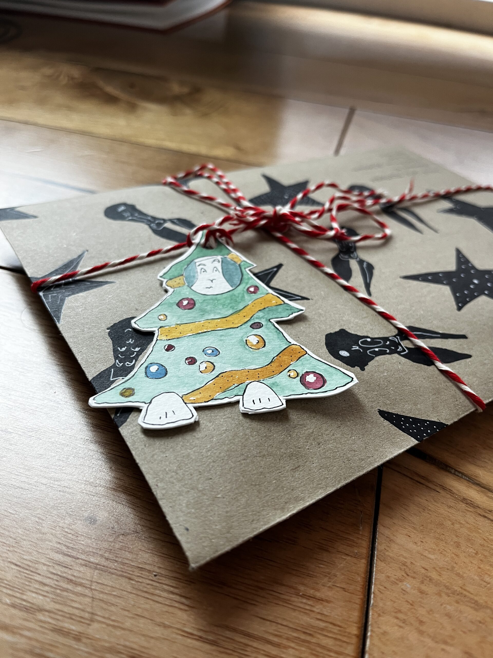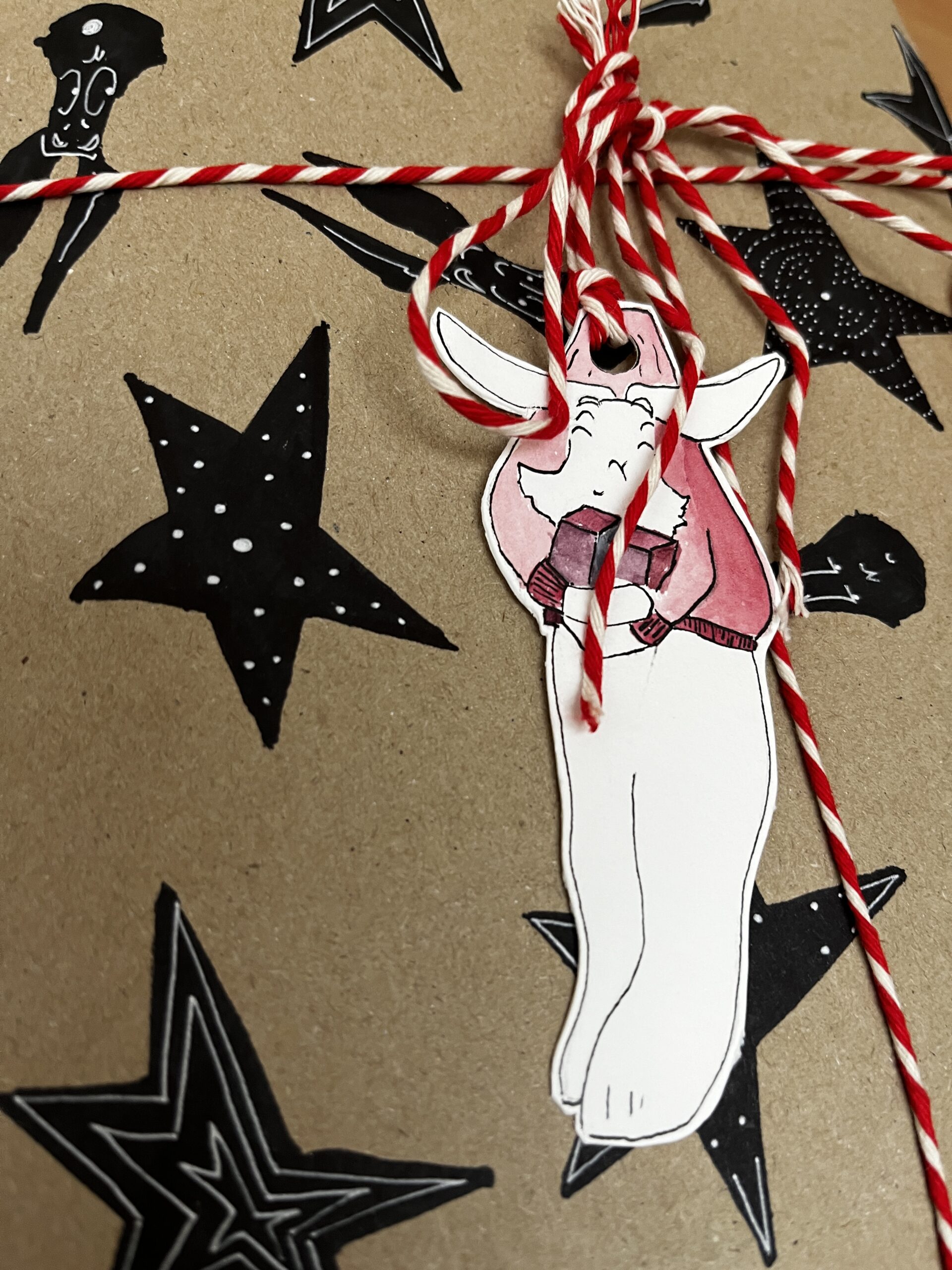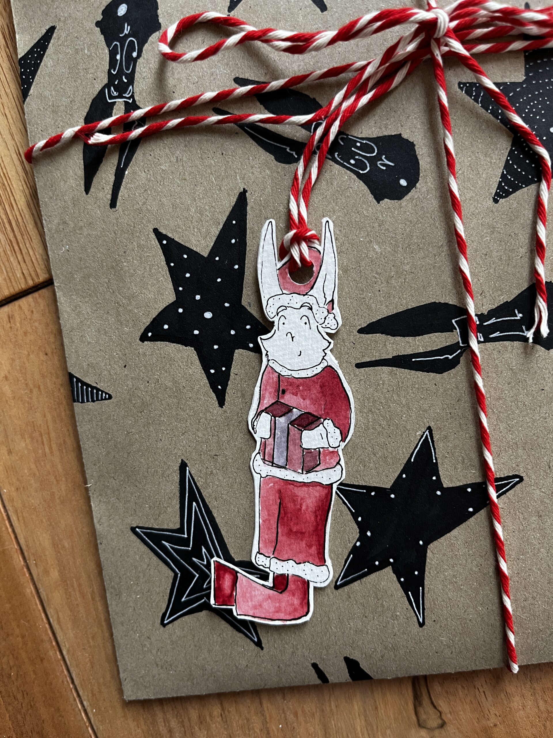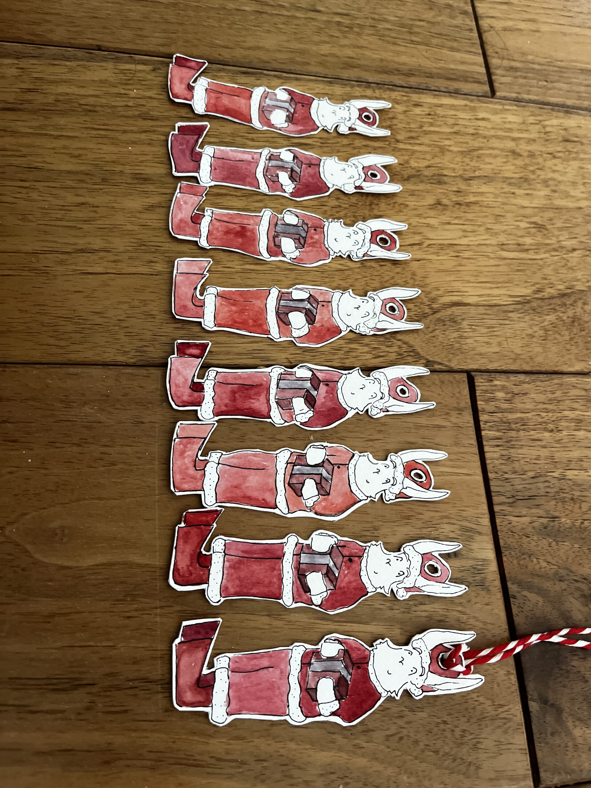 Each gift card has been individually drawn, painted, inked and cut out to give the most unique, humorous Christmas gift cards! Each gift tag comes with its own beautiful red and white baker’s twine!