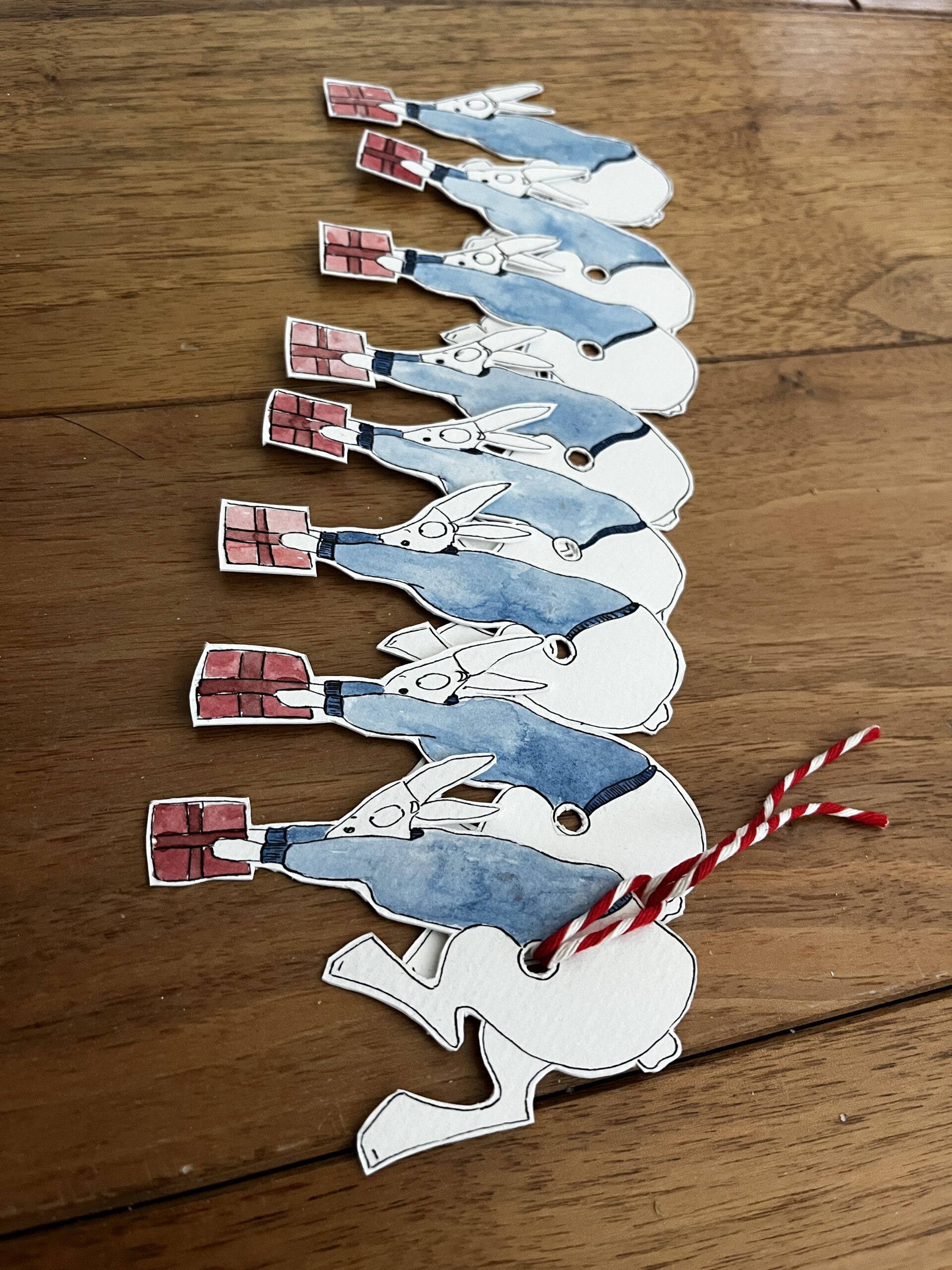 Be the first to review “A set of 4 whimsical Christmas tags featuring George the Cynical Rabbit”